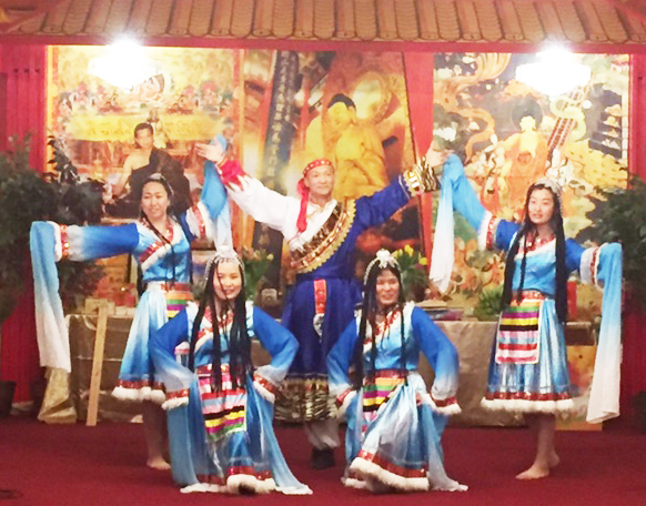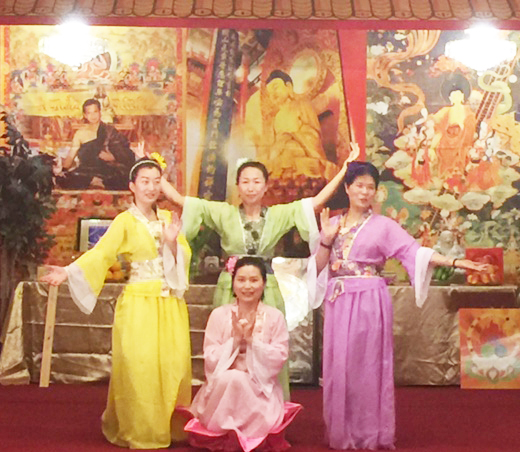 居士們多彩多姿的歌舞盡現佛國兒女風采,在大日佛光普照下,幸福快樂覺悟的生活!